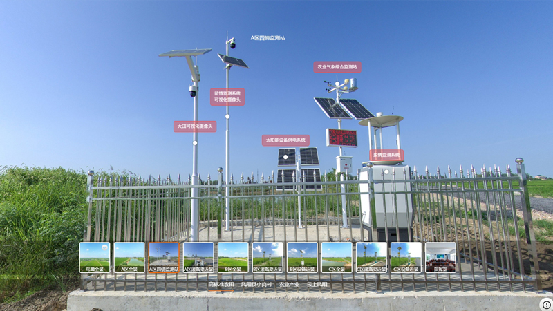 应用: 管理人员可通过定期更新的VR全景,远程巡查农田状况。例如,放大查看作物长势、识别病虫害早期迹象、检查基础设施(如电井、泵站、监控杆)是否有损坏。